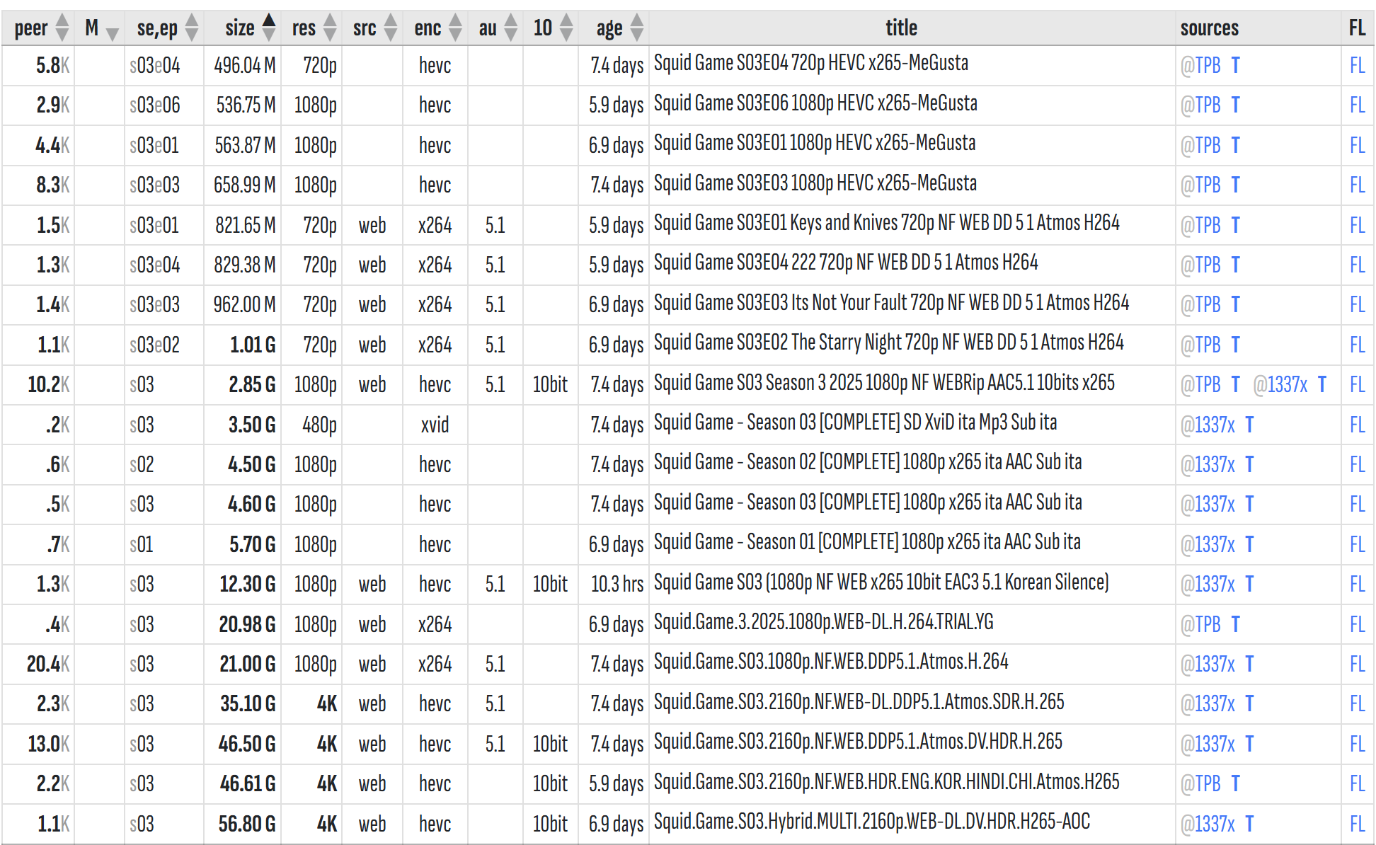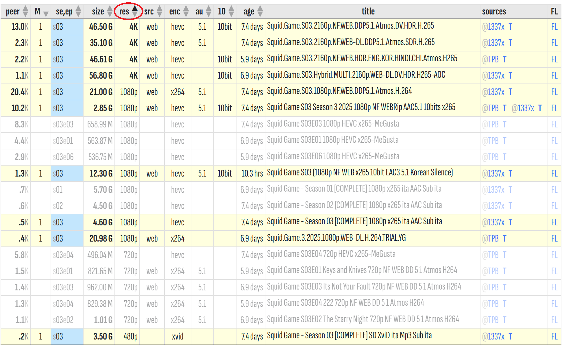 Let`s say that we are searching for the best quality of "Squid game S03"