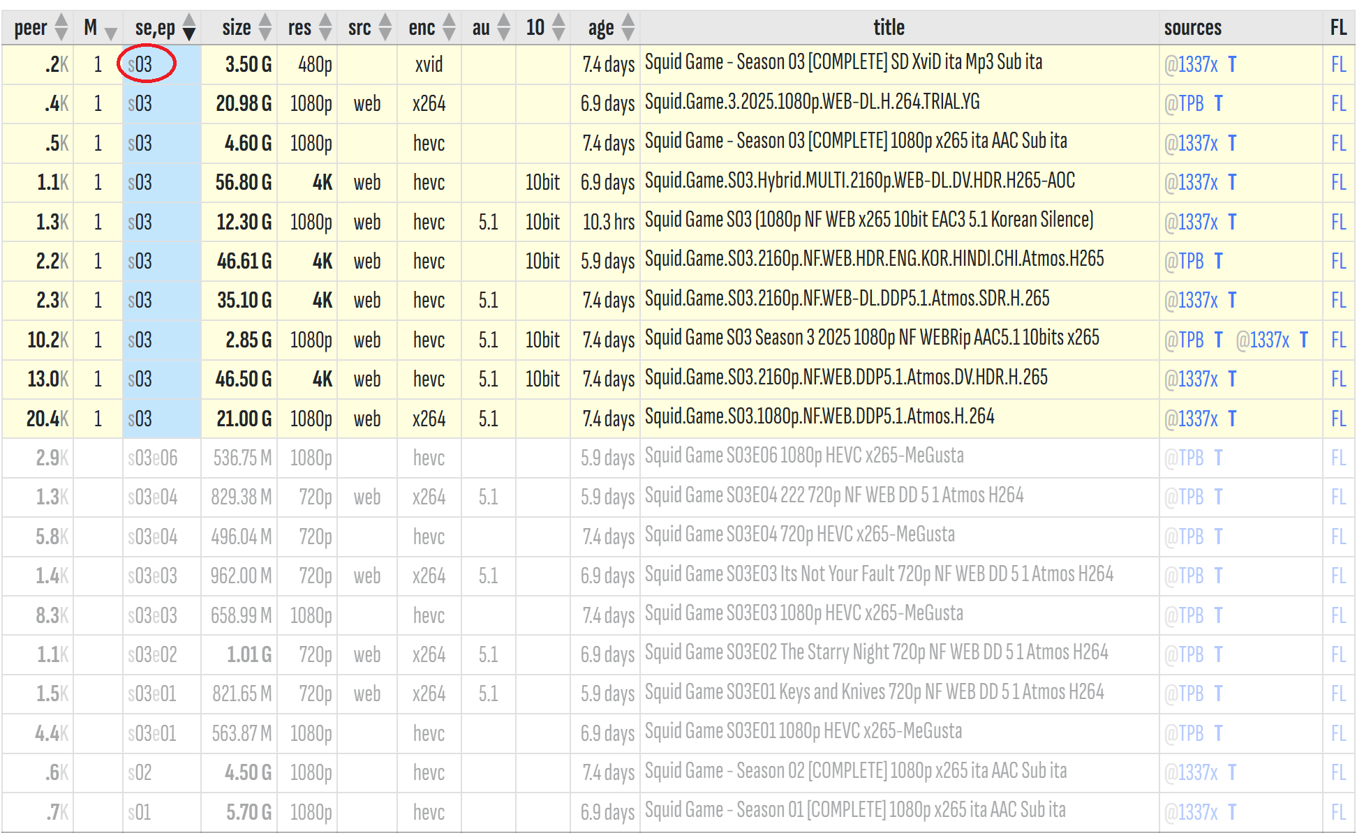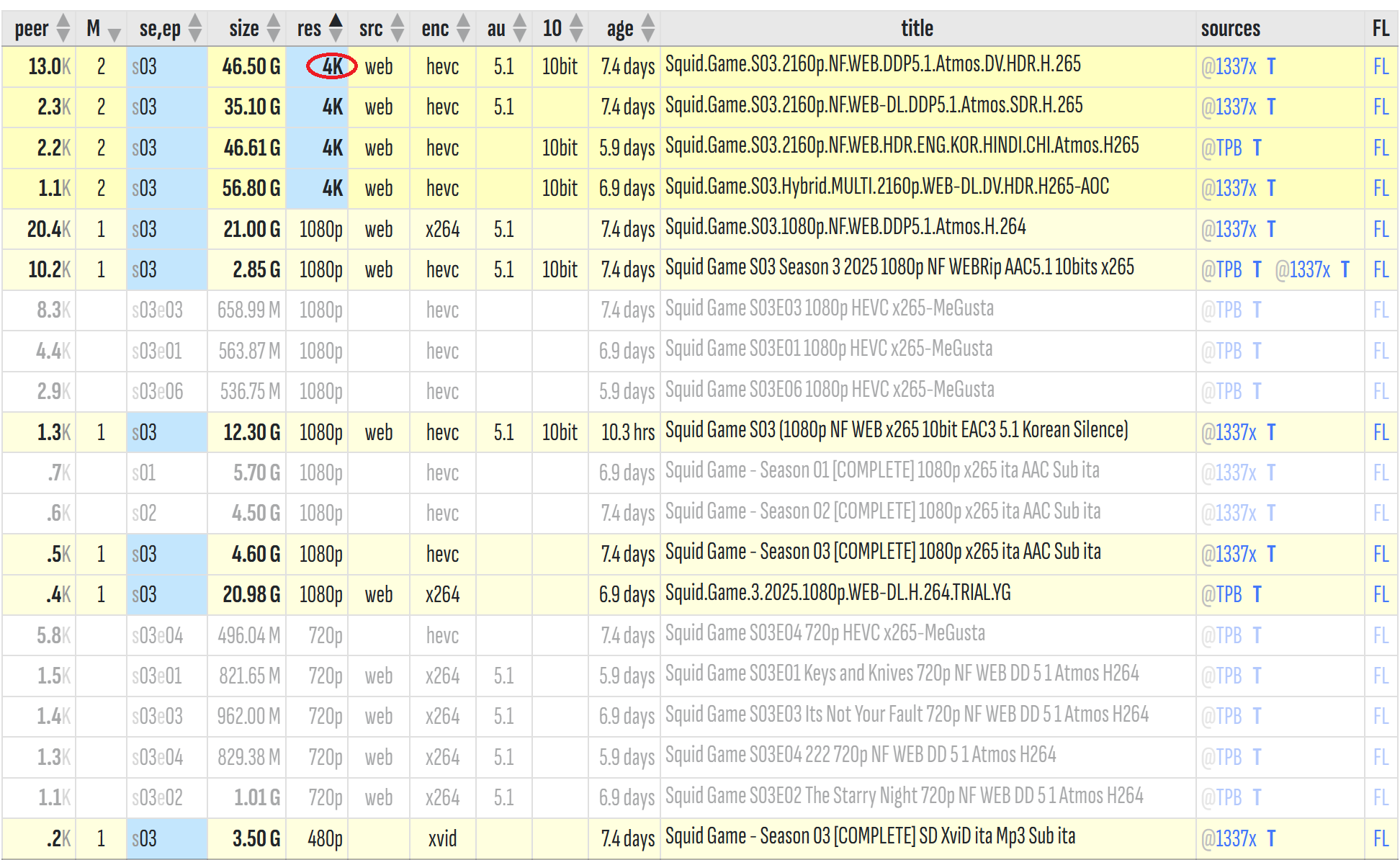 Let`s say that we are searching for the best quality of "Squid game S03"
