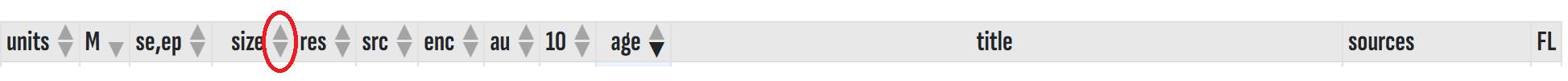 The small triangles indicate sortable column